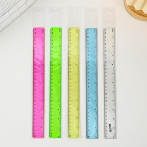 外贸30cm塑料直尺小学生创意彩色透明塑料尺可加logo绘图测量直尺