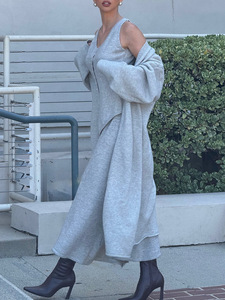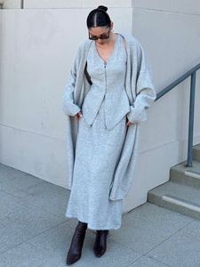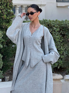 早秋气质慵懒针织三件套宽松中长款开衫无袖马甲背心A字半身长裙