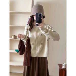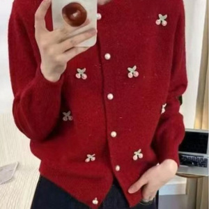 洋气减龄立体樱桃针织开衫女秋冬新款韩系温柔风气质优雅软糯毛衣
