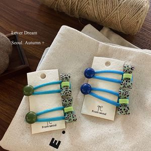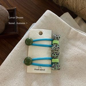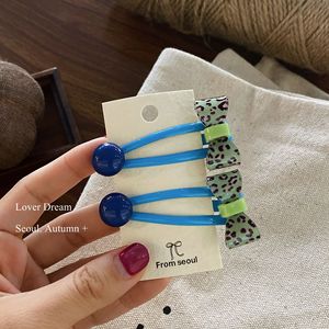 绿色豹纹蝴蝶结 蓝色馒头珠 水滴BB发夹套装