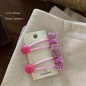 粉色豹纹蝴蝶结 粉色馒头珠 水滴BB发夹套装