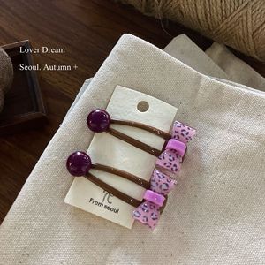 粉色豹纹蝴蝶结 紫色馒头珠 水滴BB发夹套装