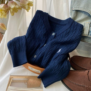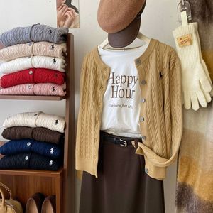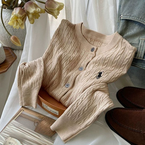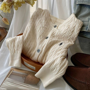 时尚刺绣麻花针织开衫女装早秋冬季复古圆领红色白色毛衣外套上衣
