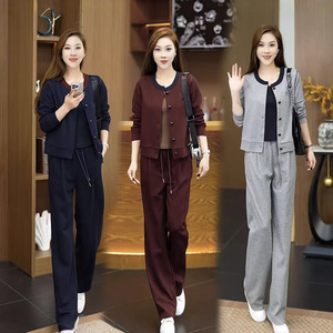 时尚休闲套装女2025秋季新款时髦洋气长袖开衫外套阔腿裤两件套潮