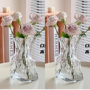 大号花瓶设计感玻璃花瓶轻奢感摆件客厅水养富贵竹插花瓶