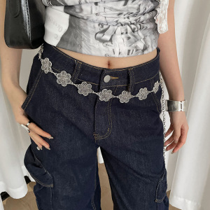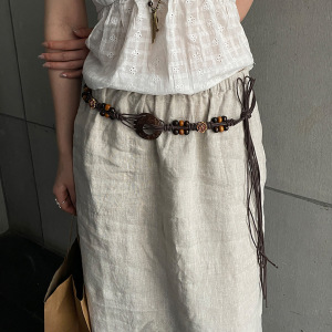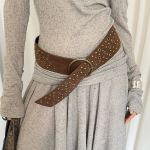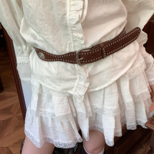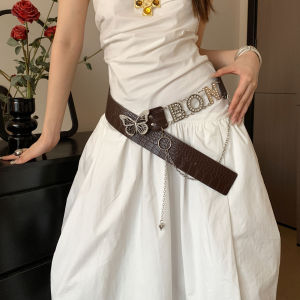 复古废土风棕色蝴蝶腰带女小众花朵镂空设计感腰绳配裙子腰封装饰