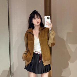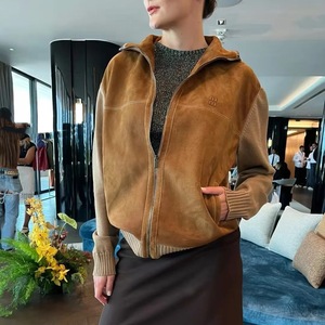 25秋冬M家新款胸前字母刺绣袖子针织拼接拉链立领休闲夹克外套潮