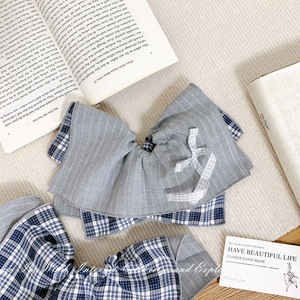 秋季新款上新八角复古方巾大肠发圈女格纹双面布艺高弹力发绳发饰