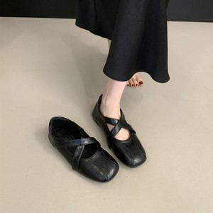 法式复古交叉带玛丽珍鞋女2025秋季新款仙女芭蕾舞鞋浅口平底单鞋