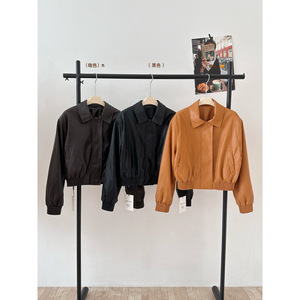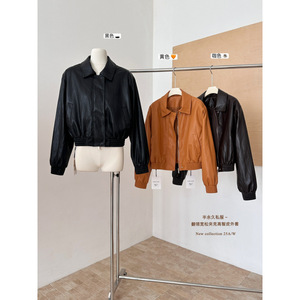 新款黑色夹克短款拉链美式复古港风小个子爆款皮衣外套女