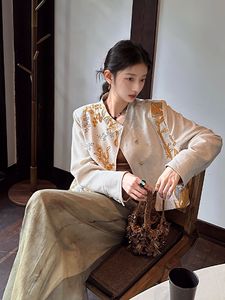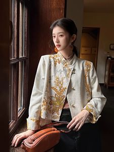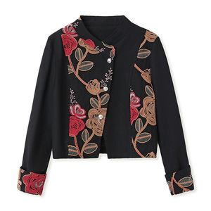 新中式国风时尚撞色绳绣亚麻休闲夹克秋季新款高端刺绣外套 N8089