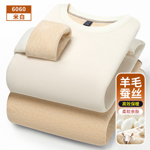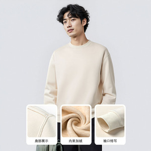 男士卫衣2025新款羊毛蚕丝加绒卫衣男款无帽简约重磅卫衣男长袖