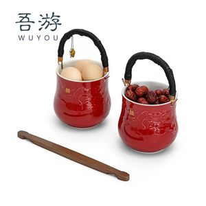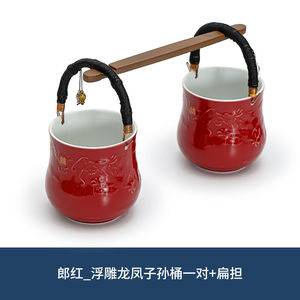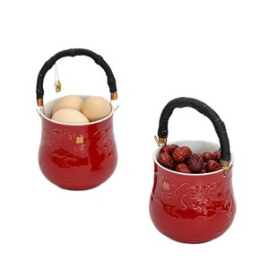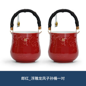吾游新婚陪嫁子孙桶中式订婚陶瓷小红桶创意摆件女方嫁妆喜庆用品