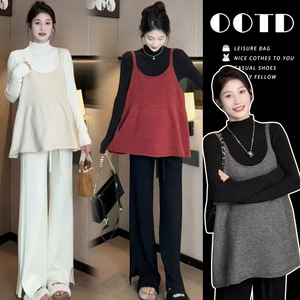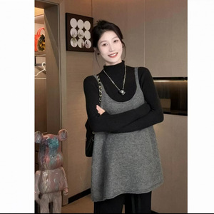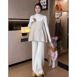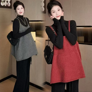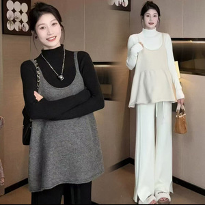 孕妇装小个子韩版孕妇吊带背心+打底衫上衣两件套