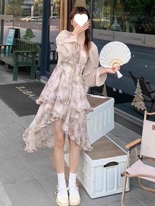 纯欲风超仙清冷系绝美水墨晕染吊带连衣裙女气质海边度假裙两件套