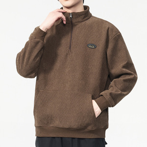 安洋半拉链灯芯绒卫衣男冬季加绒保暖立领休闲上衣重磅宽松上衣服