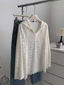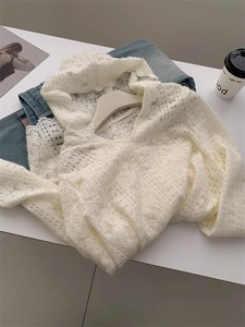 设计感重工钩花蕾丝镂空连帽打底衫女2025年秋季韩版中长款上衣