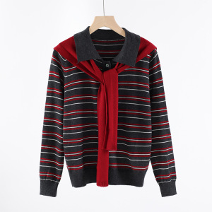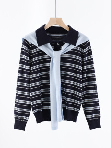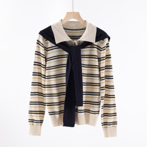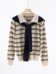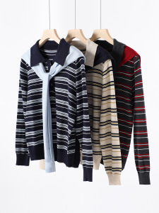 老钱风高级感超细绵羊毛条纹针织衫上衣女披肩显瘦POLO衫毛衣外套