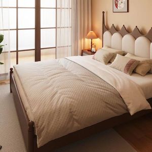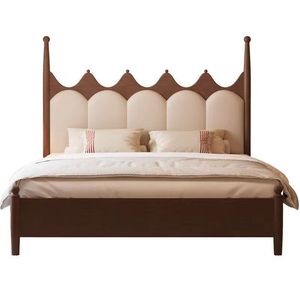 法式复古实木床皇冠主卧小户型软包美式法式床中古奶油双人实木床