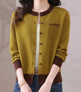 高级感撞色圆领针织开衫女外搭2025春秋新款独特小香风毛衣外套薄