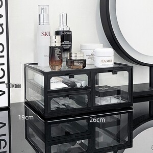 【黑色三格抽屉】加厚钢化玻璃
