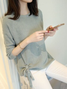 2025秋季女装系带毛衣长袖套头宽松针织衫短款打底衫外套上衣春装