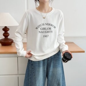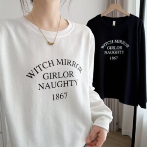 大码卫衣200斤胖MM秋季新款基础款简约印花字母圆领长袖上衣8077