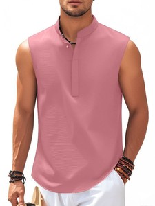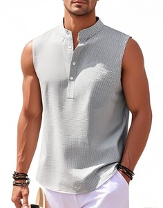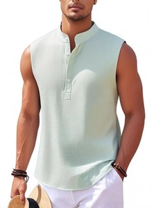 2025新款夏季男士时尚立领多巴胺外穿轻薄薄款背心无袖衬衫欧美