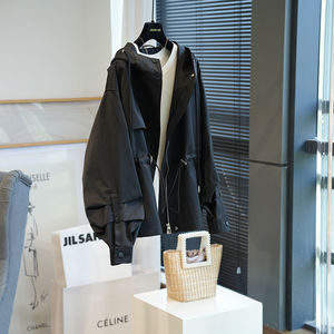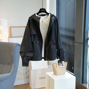 新款设计感秋季短风衣外套女连帽抽绳收腰显瘦上衣外穿洋气