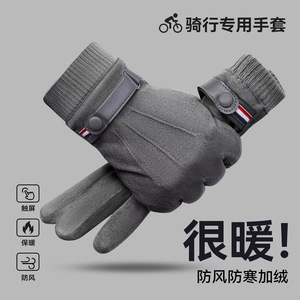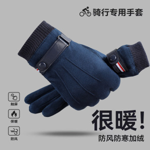 冬季骑行手套保暖男士加厚户外防寒骑车防风可触屏麂皮绒成人
