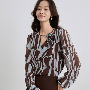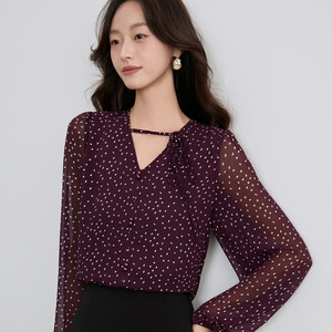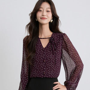 2025秋季新款波点印花雪纺衫长袖衬衫女显瘦百搭上衣3109