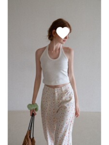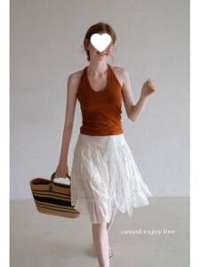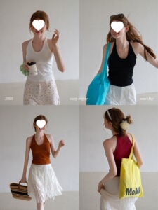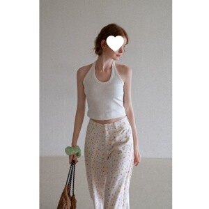 EGGKA纯色V领挂脖修身背心可外穿女夏季度假风短款显瘦百搭上衣