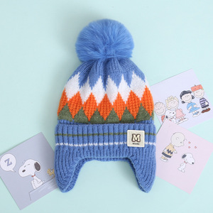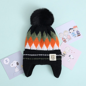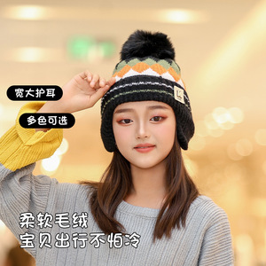 新款跨境提花小树护耳帽冬护耳帽中童毛线帽防风针织保儿童针织帽