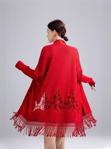 2025新款时尚刺绣针织披肩刺绣开衫婚礼斗篷妈妈装女士开衫外套