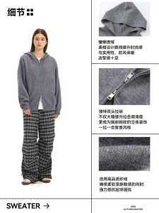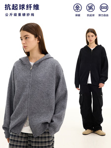 UNF 2025秋冬新款老钱风重磅保暖连帽毛衣基础纯色宽松拉链针织衫