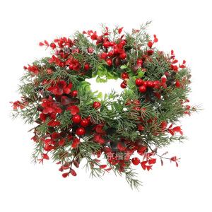 跨境批发美式红果圣诞花环尤加利桉树叶门挂橱窗道具组合花环装饰