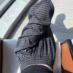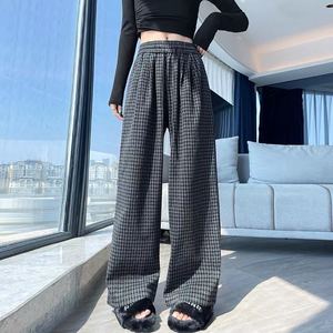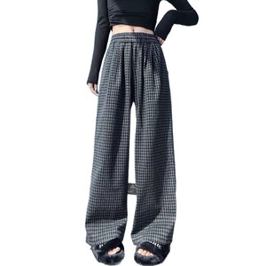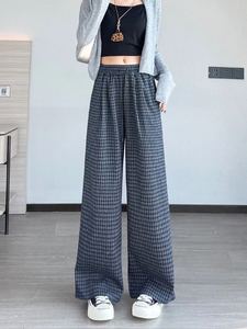 2025秋新款多巴胺磨毛格子高腰垂感阔腿裤女百搭宽松显瘦休闲裤女
