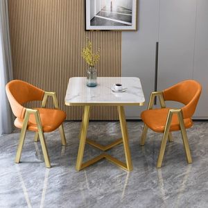 =金V腿仿理石纹+桔色皮椅