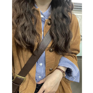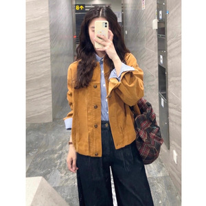 咖色翻领灯芯绒夹克外套女早秋新款设计感独特超好看宽松上衣套装