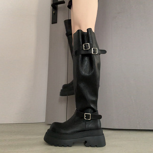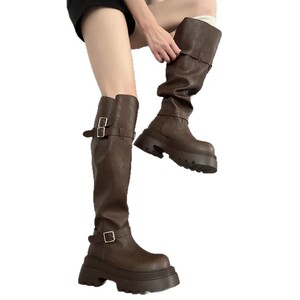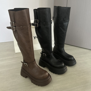 复古风显瘦过膝粗跟时装靴女秋冬时尚百搭高跟皮靴小个子休闲长靴