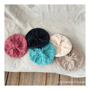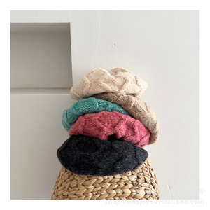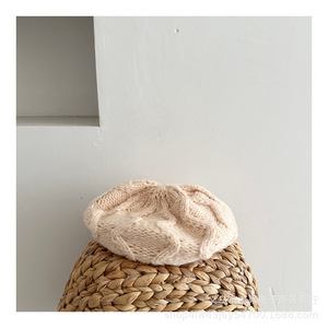 日韩新款儿童秋冬新款洋气毛线针织贝雷帽女孩文艺范小众画家帽潮