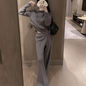 2025秋冬季女装新款时尚洋气高领十字架拉链针织衫上衣长裤两件套