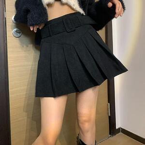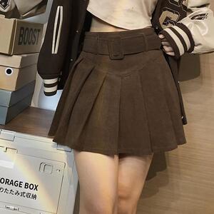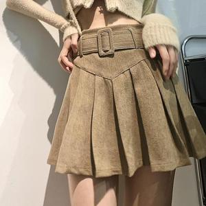灯芯绒百褶半身裙女春秋冬新款设计感学生高腰显瘦韩版字短裙子