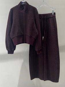 艾**丝女装2025秋装新款红棕色立领拉链收腰休闲短外套AR104128