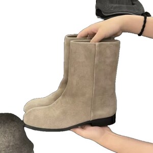 羊皮版~2025新款韩版高级感绒面短筒西部靴女平底超软秋冬单靴子
