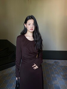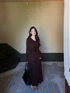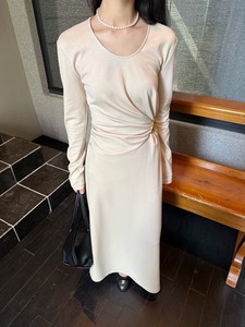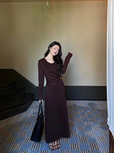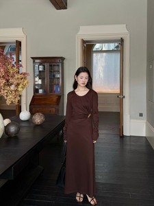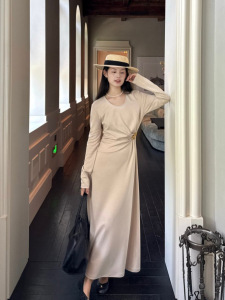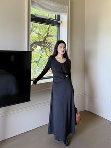 DIGM | 2025秋季极简优雅小女人金属收腰长袖天丝连衣裙女A15205