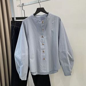 纯棉港风时尚双门襟小立领长袖衬衫减龄上衣2025秋季新款宽松衬衣