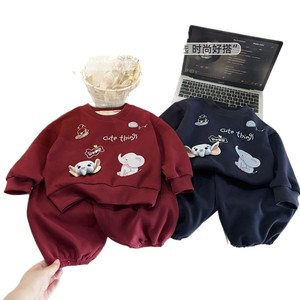 儿童两种色立体玩偶长袖套装潮童时髦运动服俩件装男女童圆领百搭