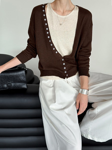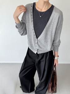 橘芷 早秋新款韩系 V领针织开衫+无袖针织背心两件套百搭上衣 932