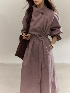 贰羊设计【紫芙】知识分子风紫色高级感风衣外套女秋炒色极简大衣